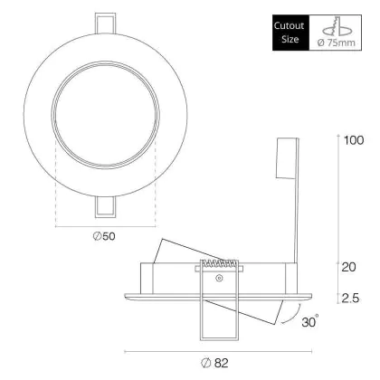 | Cut out (mm) | 75 | |