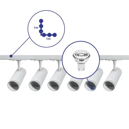 | Manufacturer Name | Complete L shaped 1-Phase Track Set White incl. 6x Spot fixture + GU10 2700K 3W Dim – 1 x 1 meter i | |