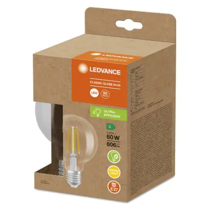 Ledvance Globe LED E27 Filament Clear 3.8W 806lm - 830 Warm White | Replaces 60W