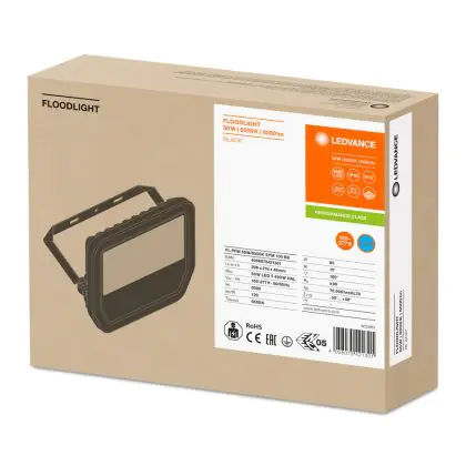 Ledvance LED Floodlight GEN 3 Black 50W 6000lm 100D - 865 Daylight | IP65 - Symmetrical