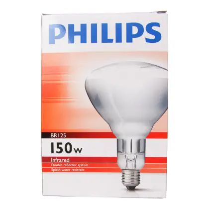 The Philips BR125 Industrial Heat IR 150w E27 230-250v Clear is an infrared incandescent reflector lamp specifically designed for industrial applications due to the reinforced hard glass construction. As a result of this robust and shatter-proof design, these lamps are also safe for use in agricultural and food preparation environments.