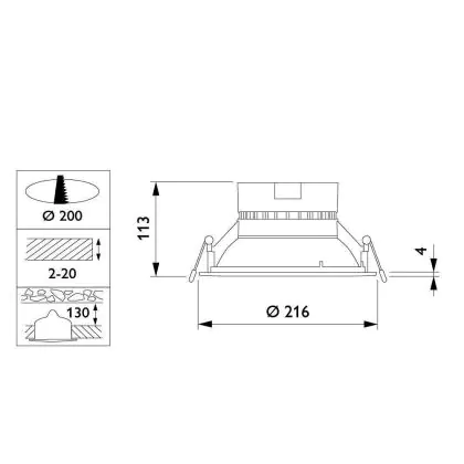 | Cut out (mm) | 200 | |
