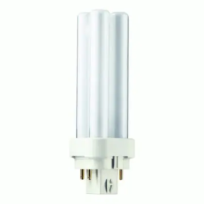 Philips PL-C 4P are compact fluorescent lamps, with separate power supplies, without a starter or capacitor. This model is equipped with a 4 pin socket and is very energy efficient. With their G24q-1 socket, Philips PL-C 10W 830 4P easily integrate into light fixtures.