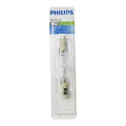 Philips Plusline ES Compact linear halogen lamps, double-ended that enable you to save energy. These lamps offer both a bright light and enhanced energy efficiency. These halogen lamps are easy to install thanks to their R7s base and offer very good support in the luminaire, especially for small decorative luminaires.